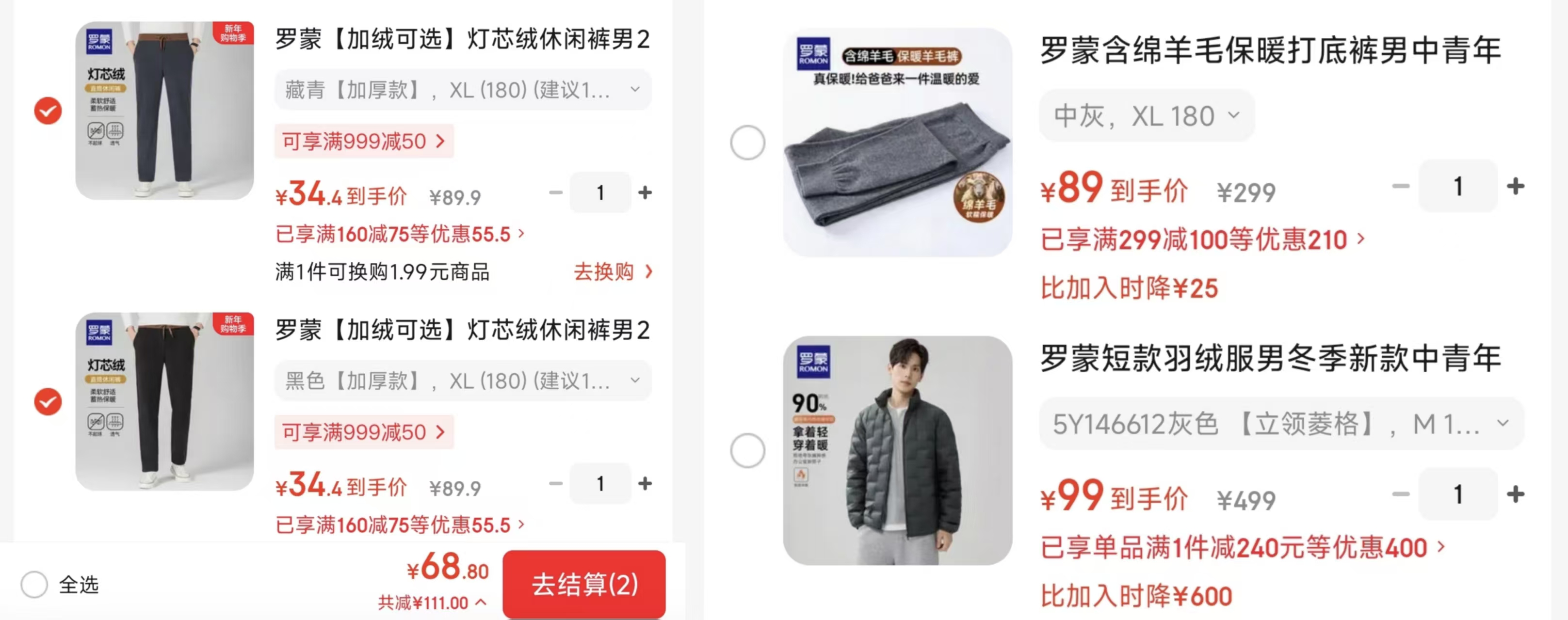 ②短款羽绒服99元
