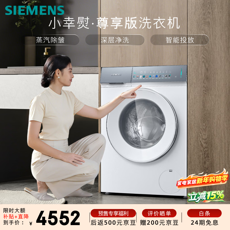 西门子 小幸熨尊享 10KG大容量家用全自动滚筒洗衣机