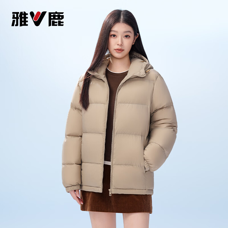 雅鹿 女士中长款连帽过膝加厚羽绒服
