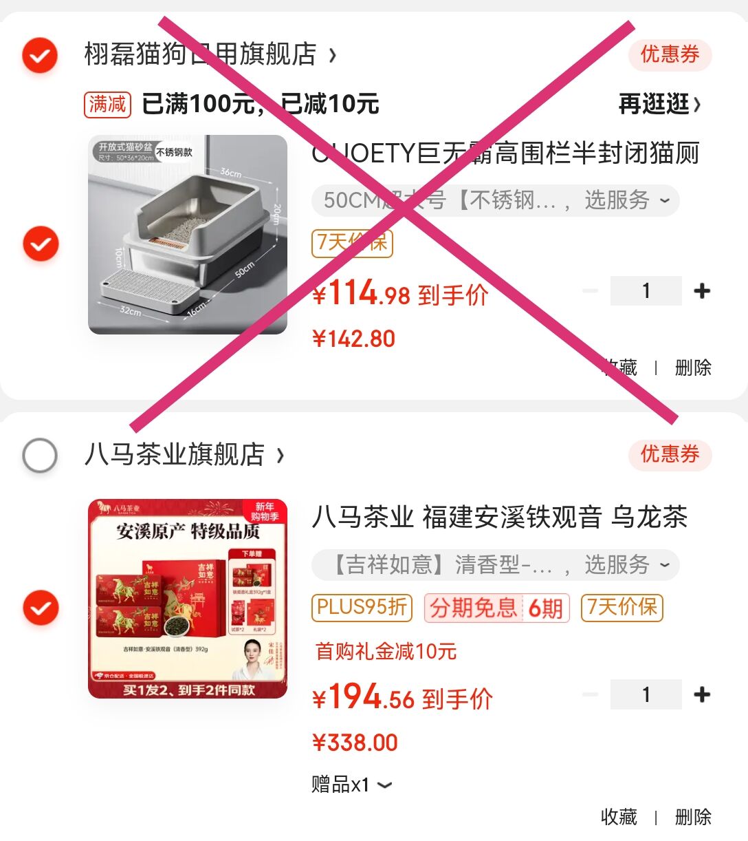 凑单任选1件付后退