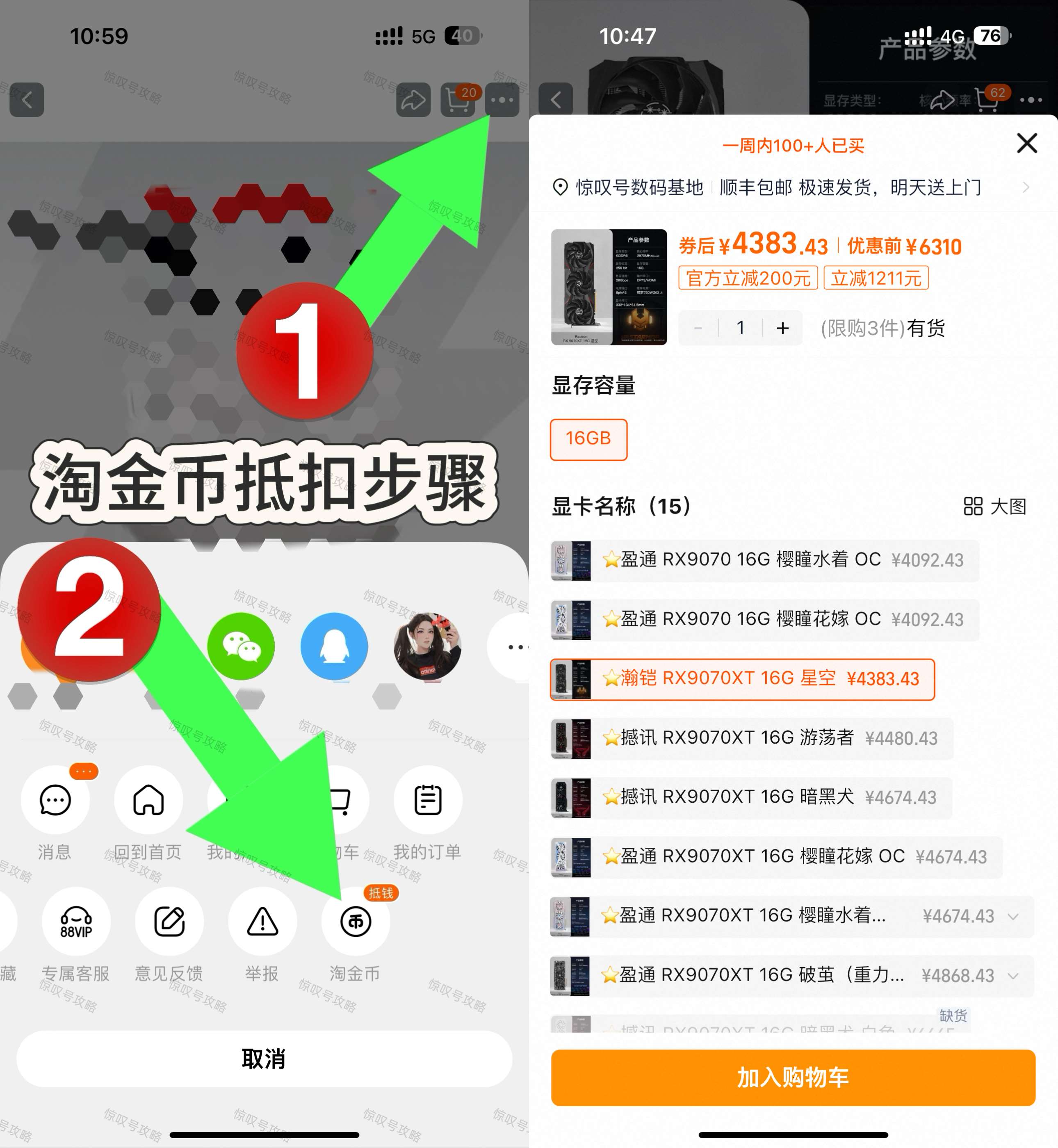 4383 瀚铠9070XT 星空 右上角三个点进淘金幤抵扣 复制这条信息打开手机陶宝