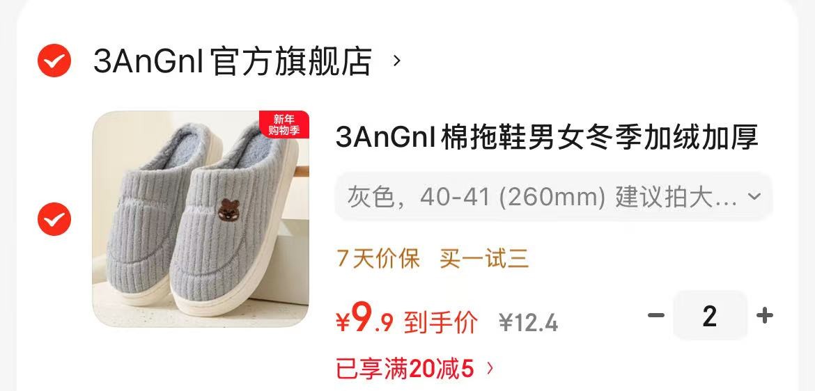 3AnGnI 棉拖鞋男女冬季加绒加厚,拍2件【19.8】