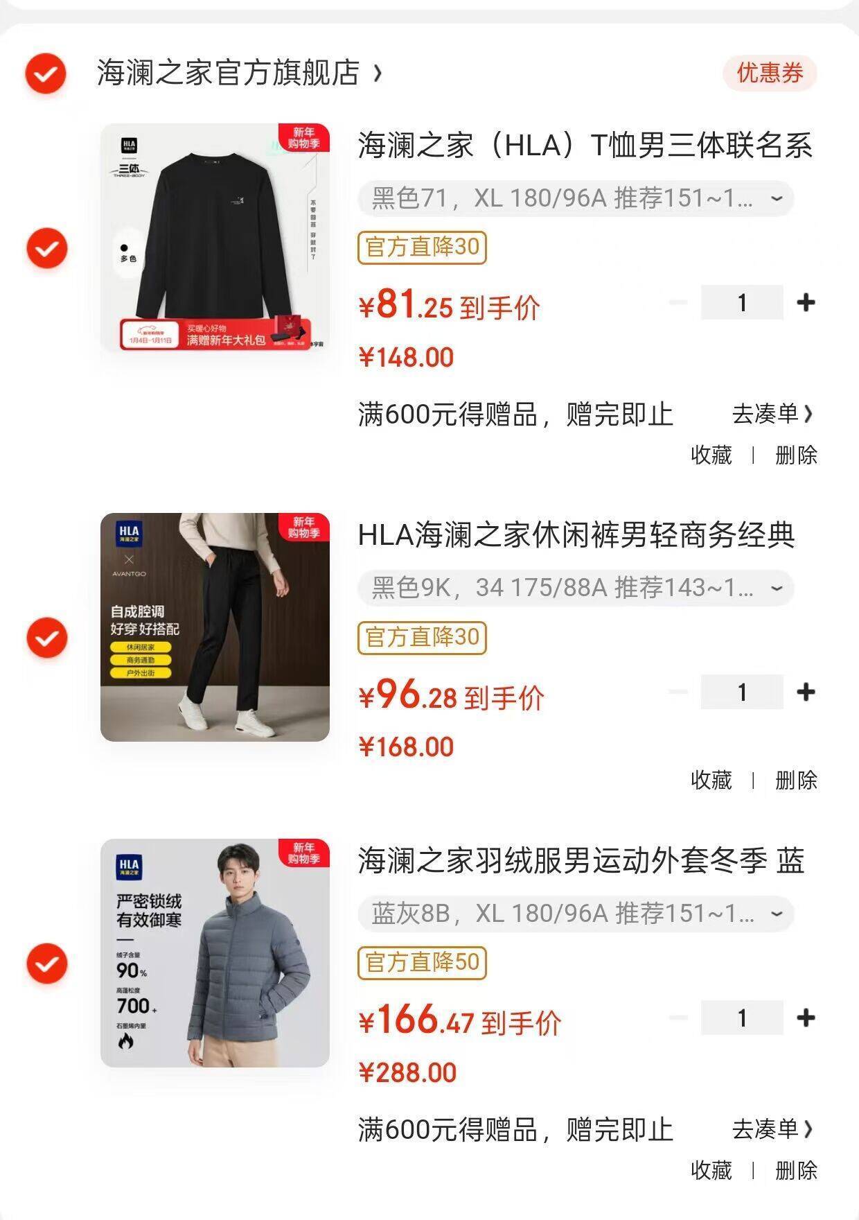 羽绒服 长袖T恤 牛仔裤各拍1件,到手仅384亓!