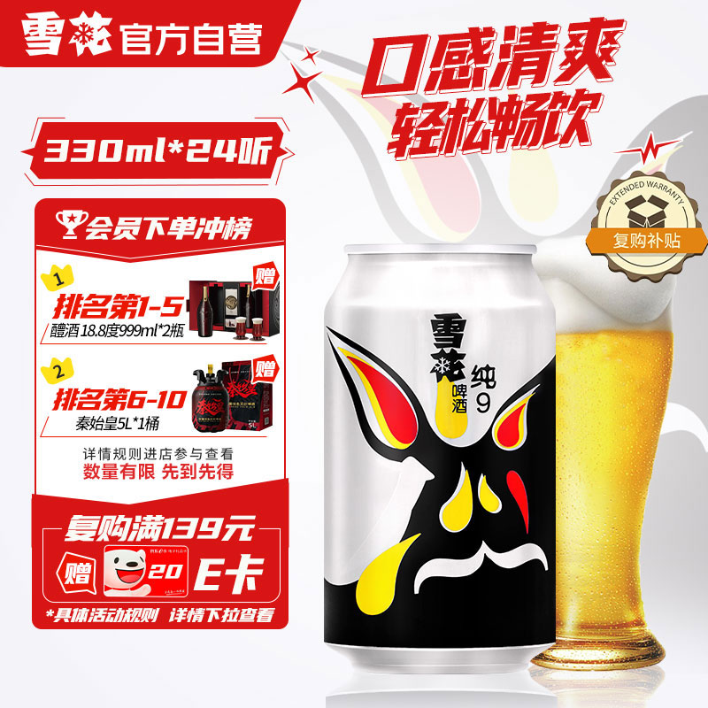 雪花啤酒 纯9 330mL 24(冰酷升级版)