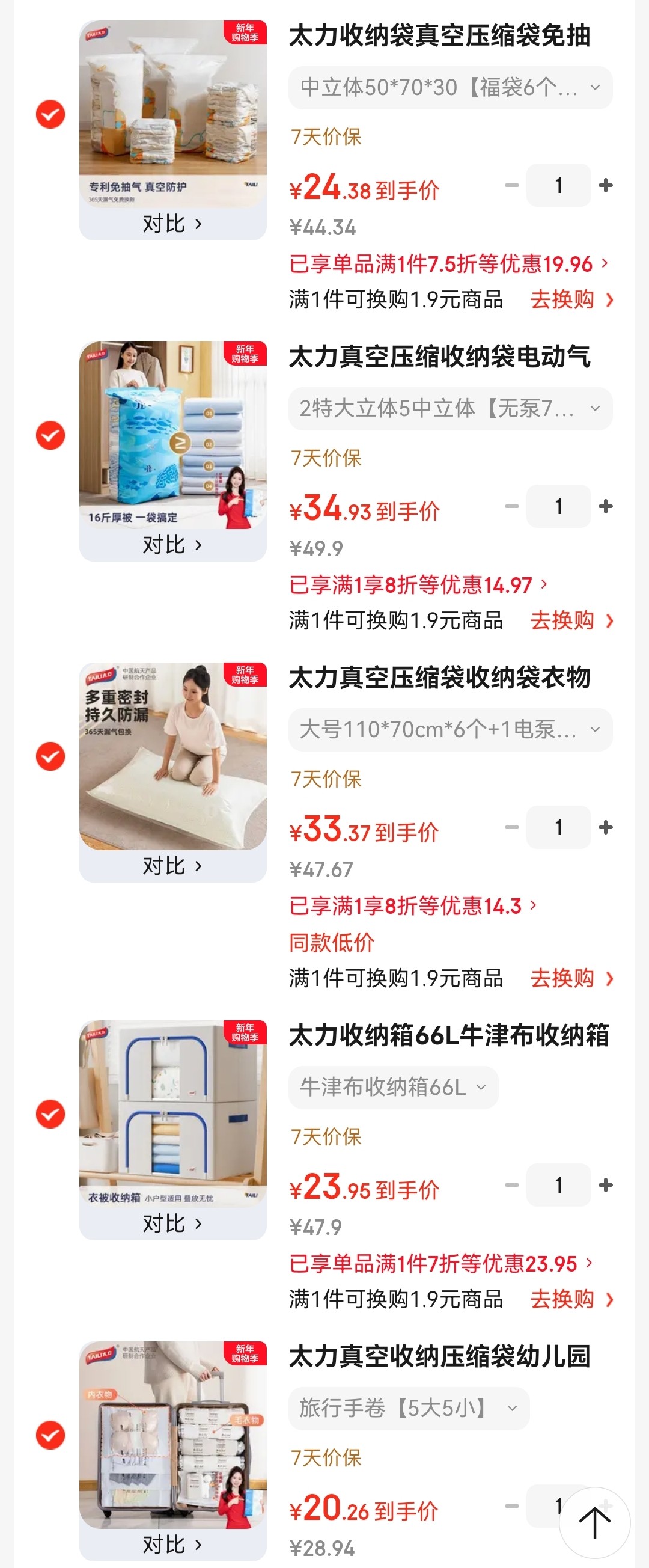 太力 真空压缩收纳袋 2特大立体5中立体无泵7件套【34.9】