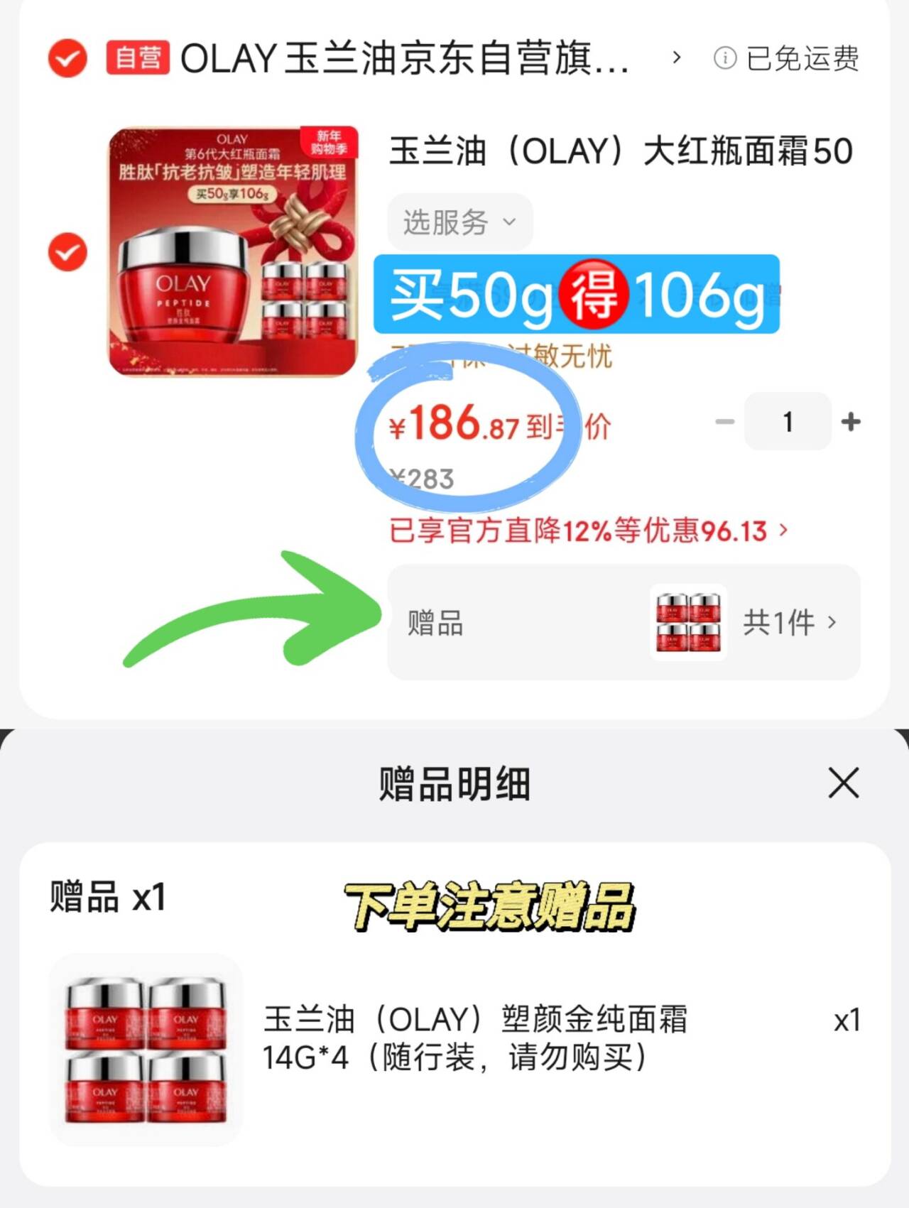 赠14g*4瓶共106g186元