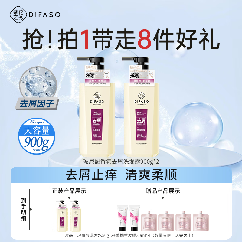 随单2瓶的赠洗发水50g 2瓶 发膜小样30ml 4袋!清爽去屑,柔顺丝滑,持久留香~
