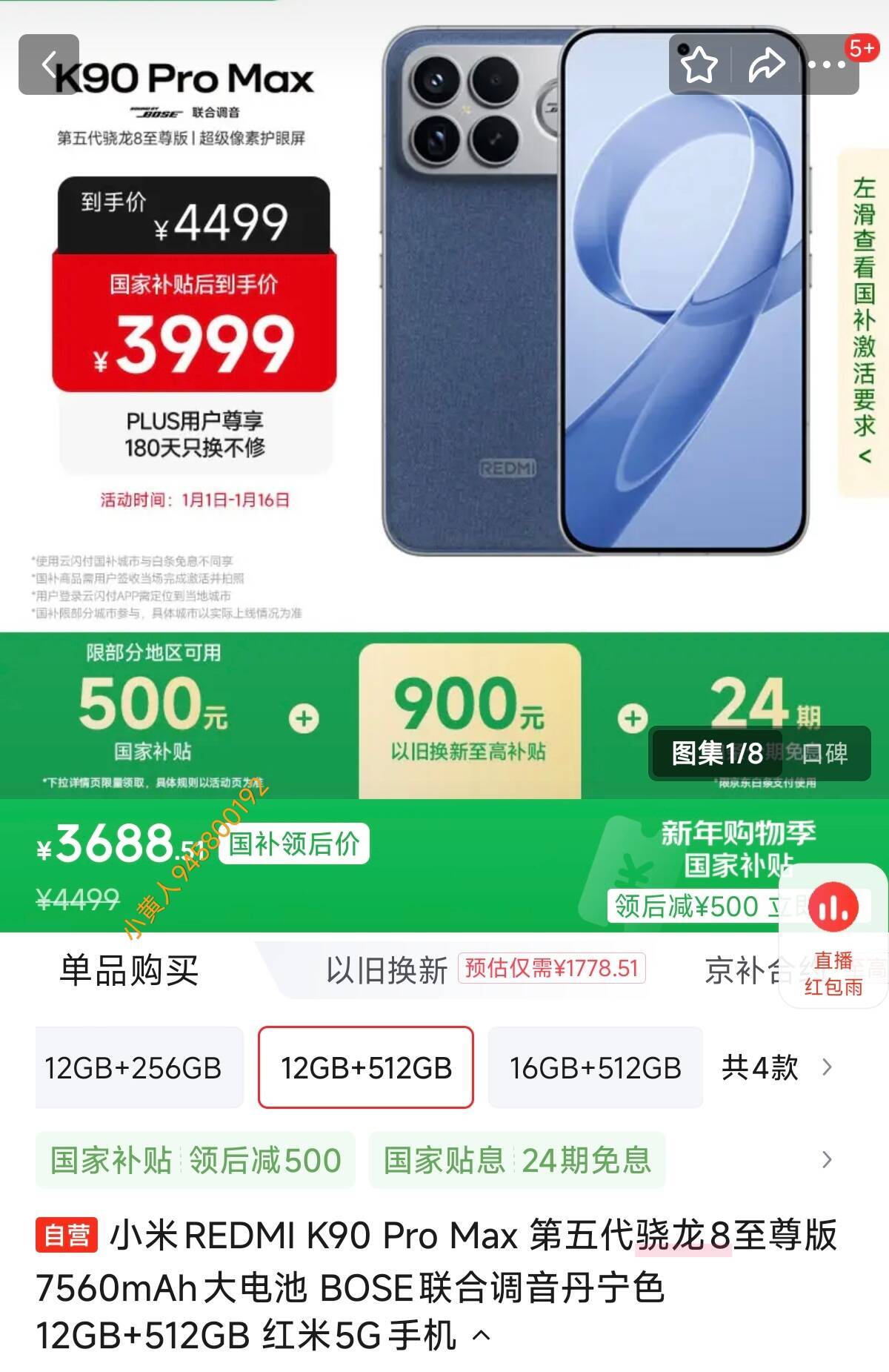 红米 K90 Pro Max 12GB 512GB,国补3688.5