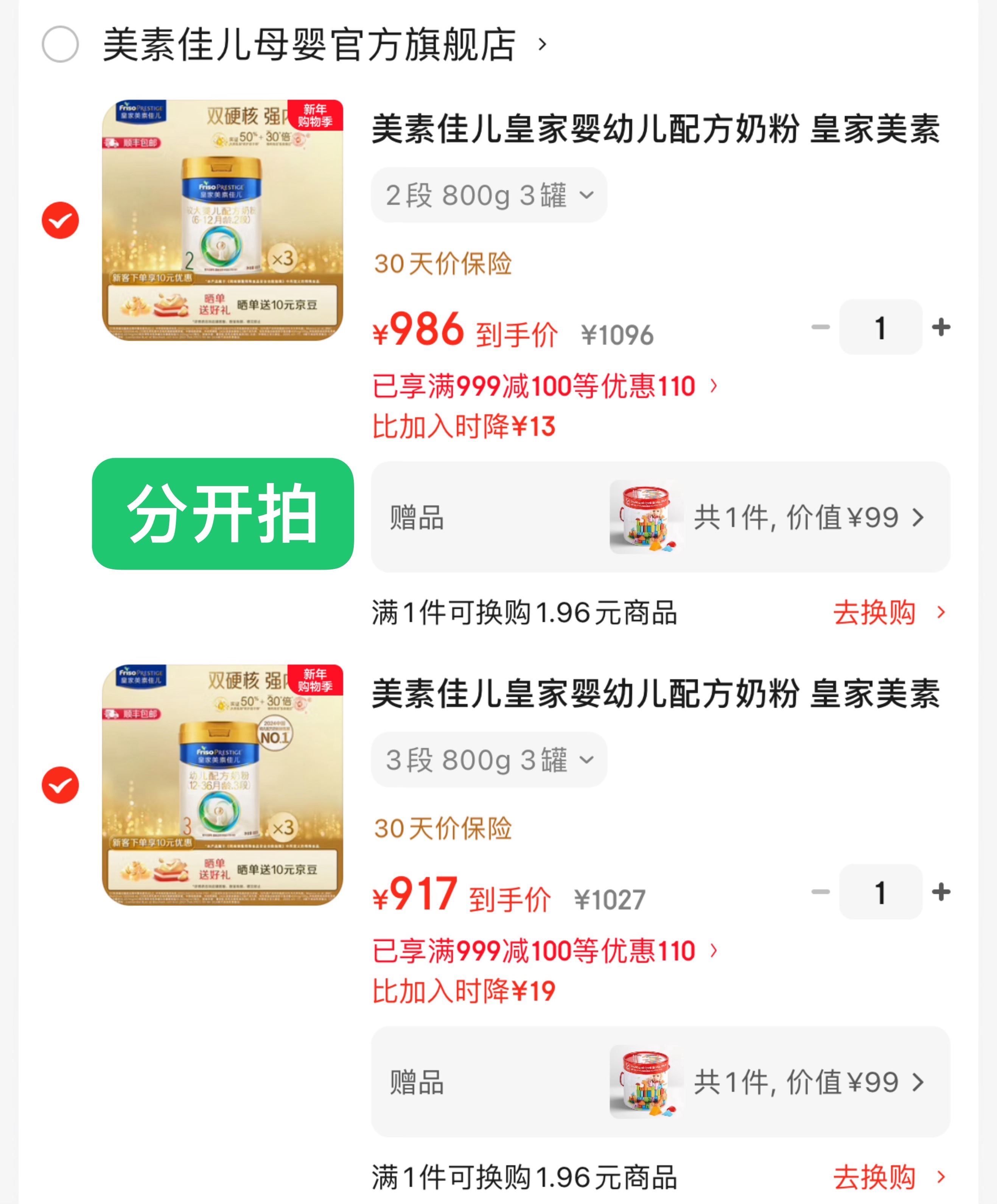 皇家美素佳儿 领999-100 2段800g3罐986