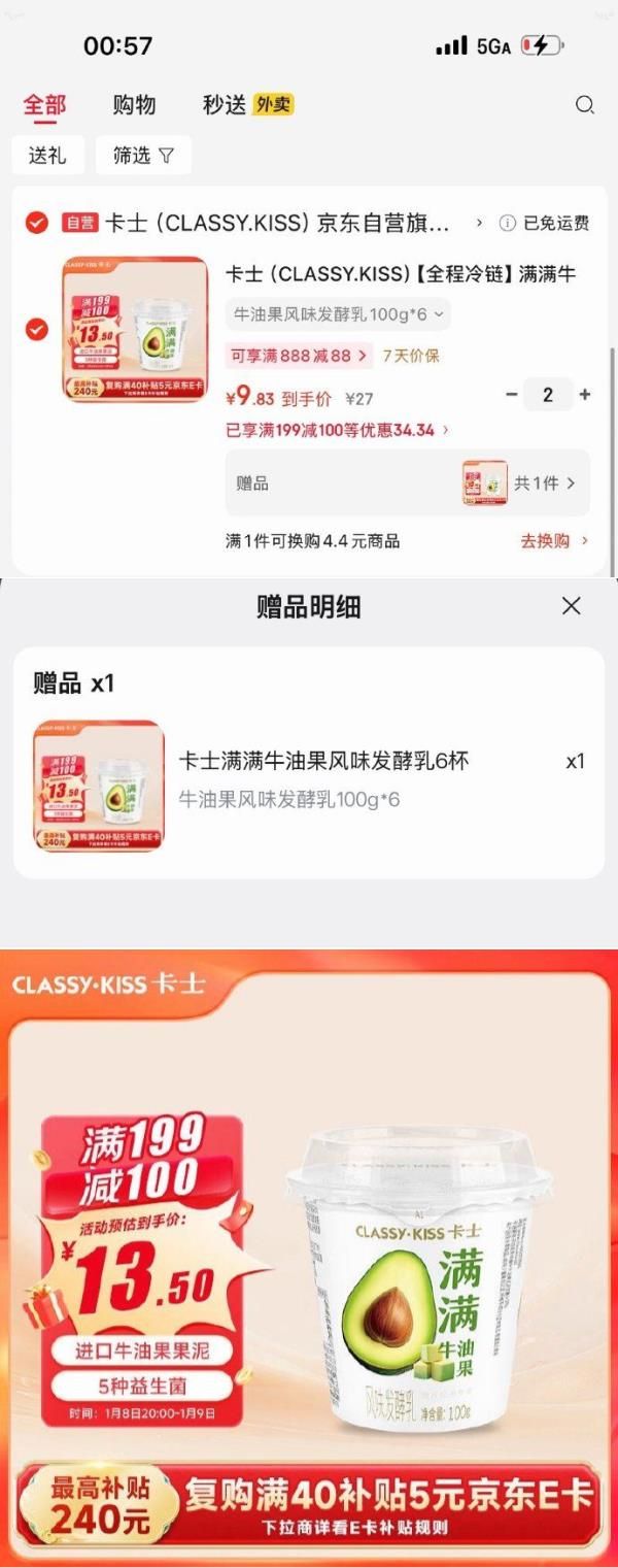 卡士 满满牛油果风味发酵乳100g*6杯 低温酸奶