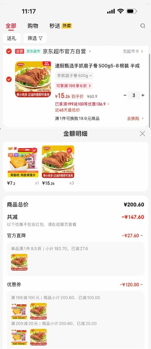 速厨甄选手抓扇子骨500g5-8根装,每件15.26