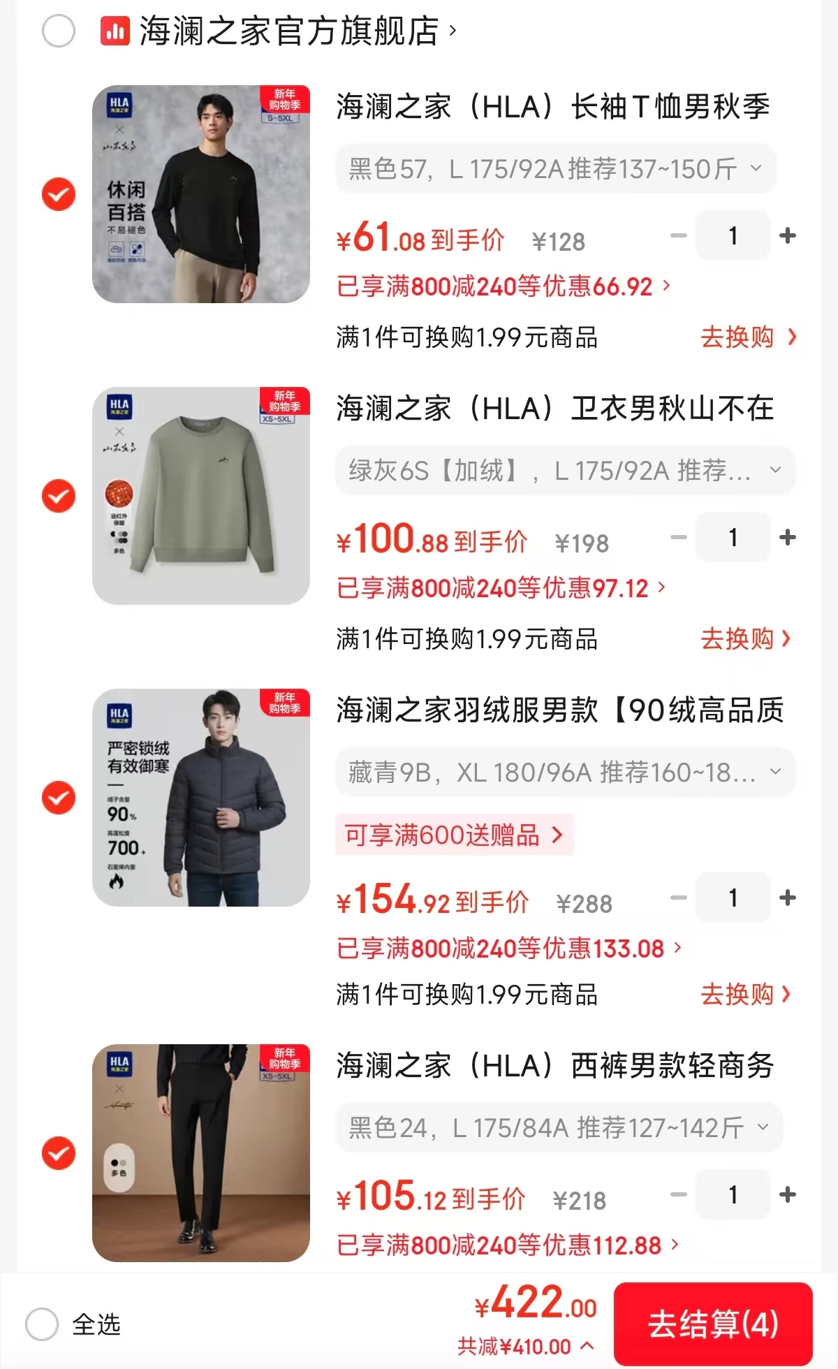 羽绒服 西裤 加绒卫衣 长袖T恤