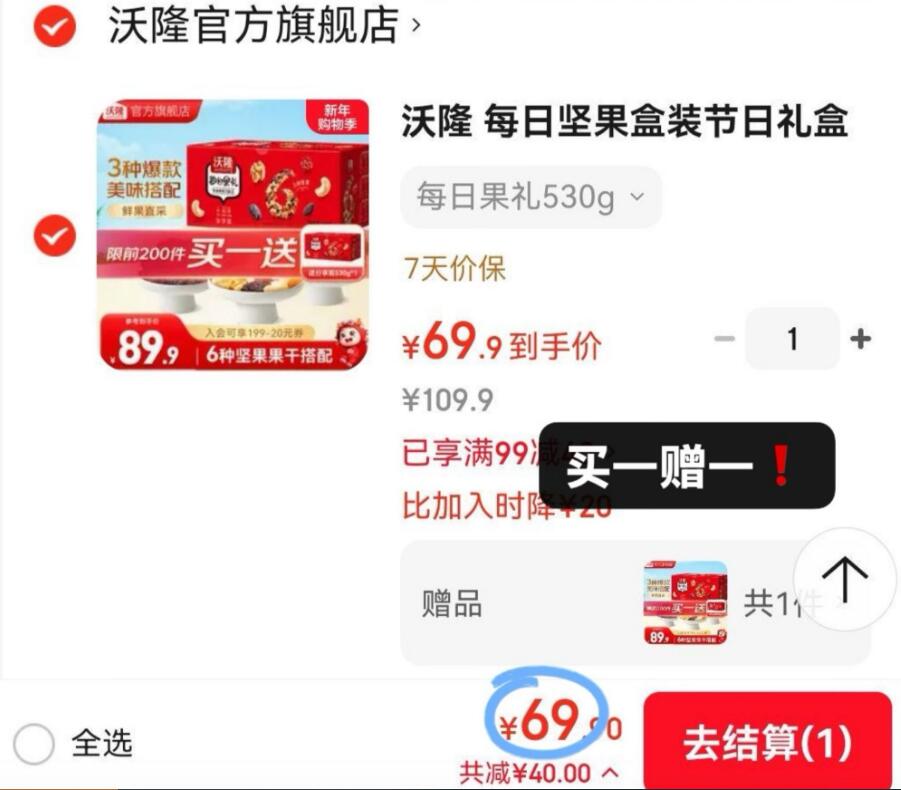 沃隆每日坚果零食礼盒530g*2箱