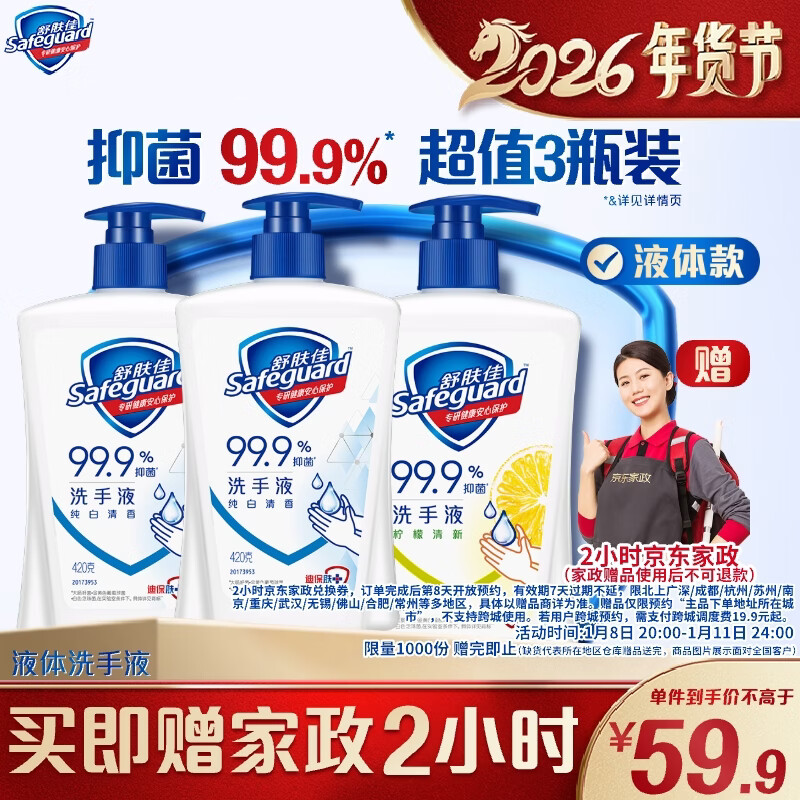 【JD自营】舒肤佳 抑菌洗手液 420g 3瓶