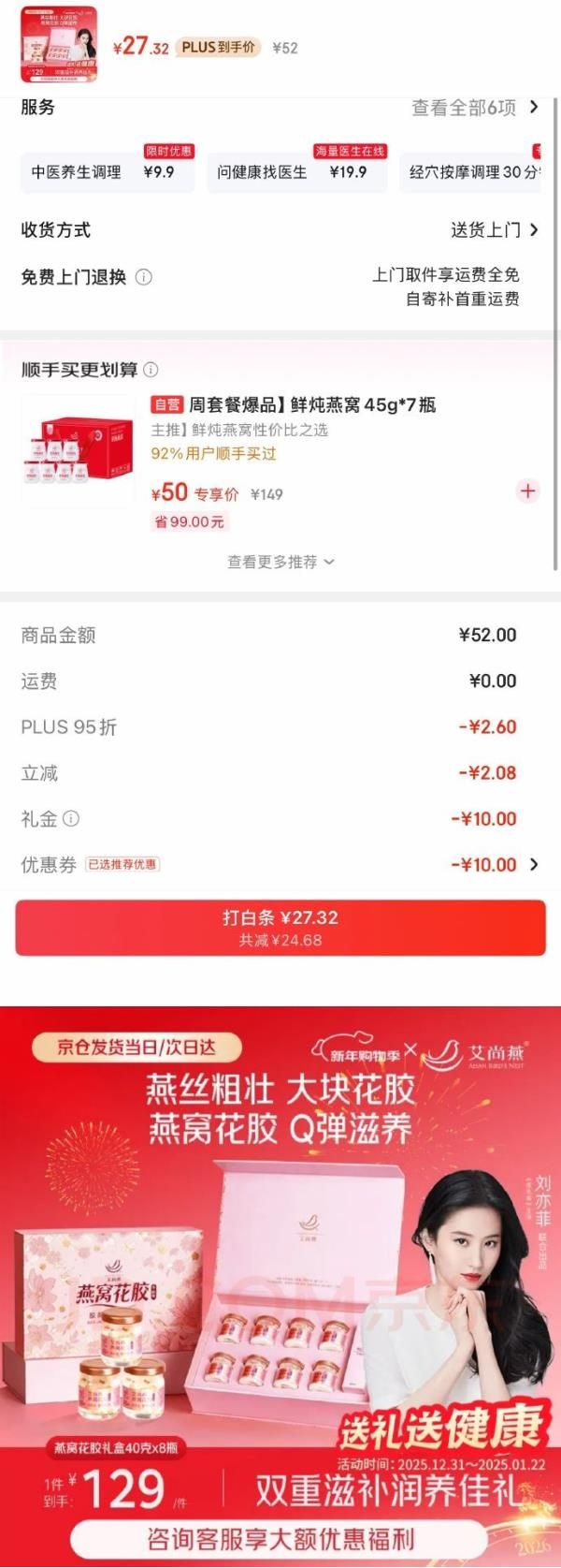 艾尚燕即食燕窝花胶8瓶礼盒,10首单,砸10券弹9.6折立减