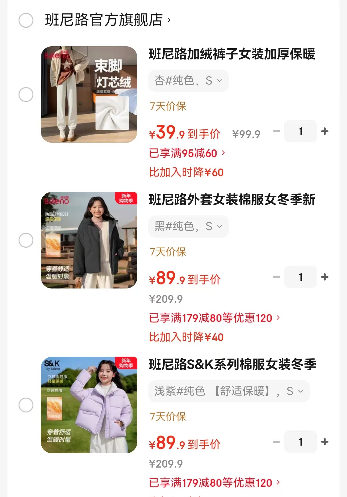 班尼路 加绒裤子女装【39.9】https://u.jd.com/EgOgsHC