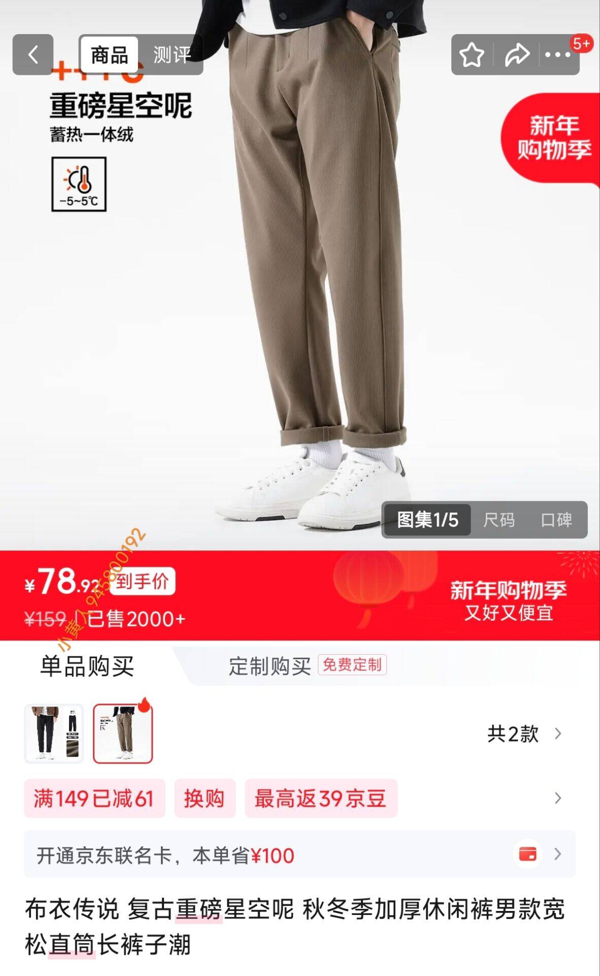 布衣传说450g重磅复古星空呢加绒加厚休闲裤,78.9