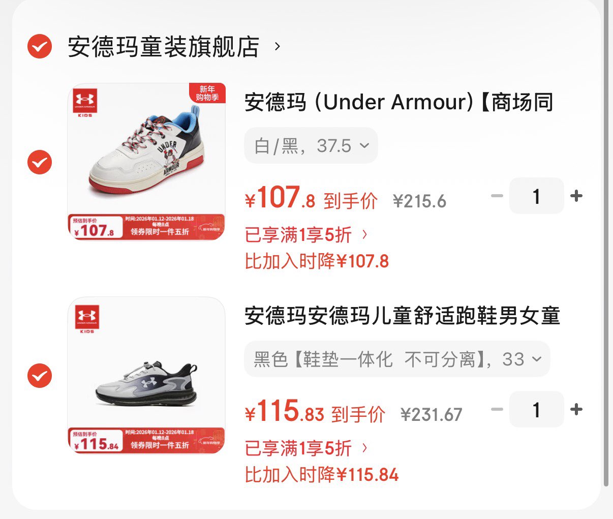 安德玛儿童舒适跑鞋 115.8亓