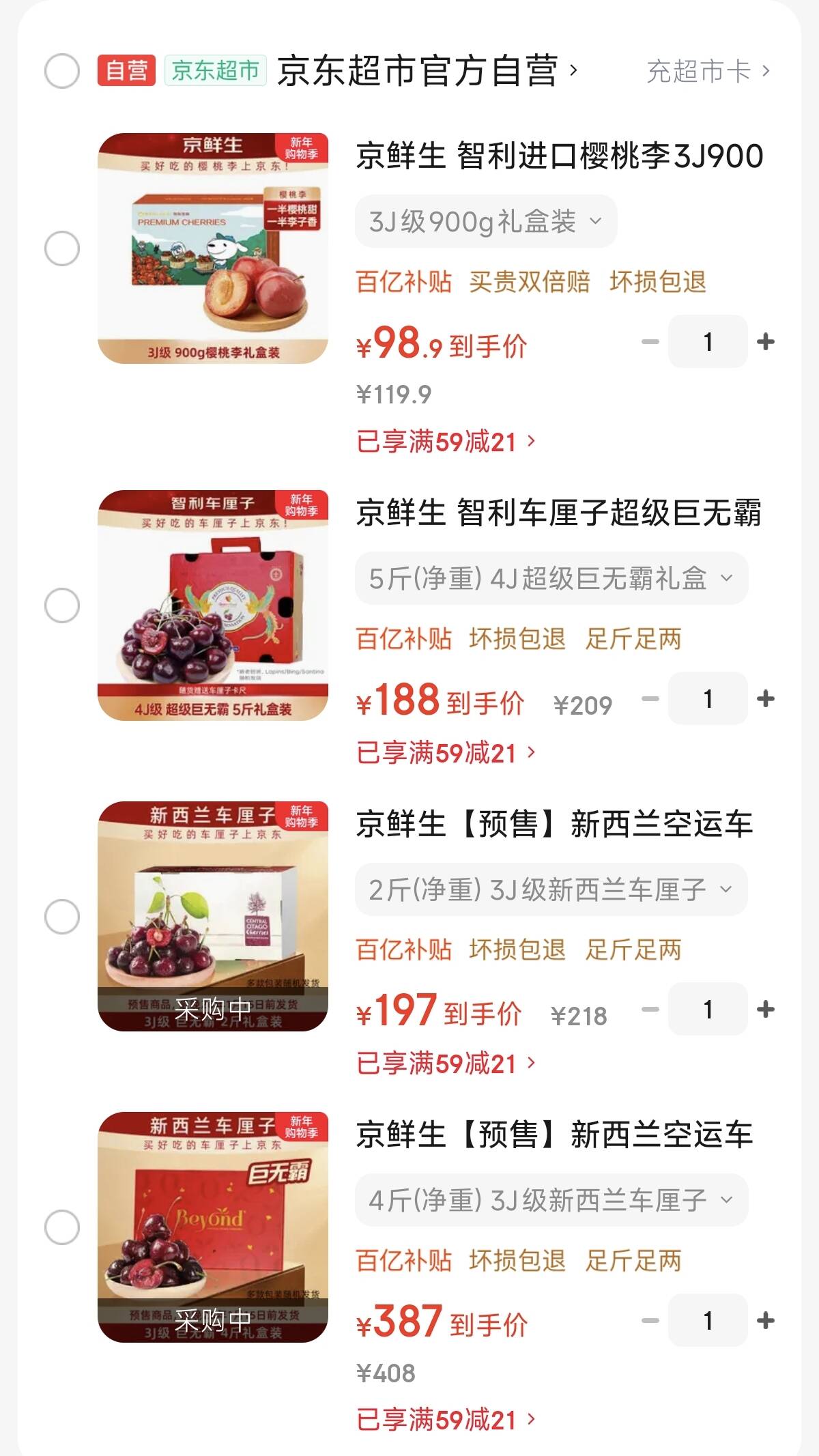 自营京鲜生车厘子