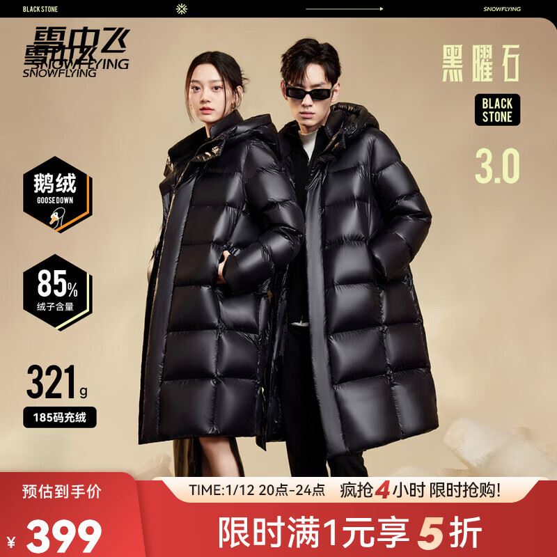 雪中飞黑曜石男女长款鹅绒服399元