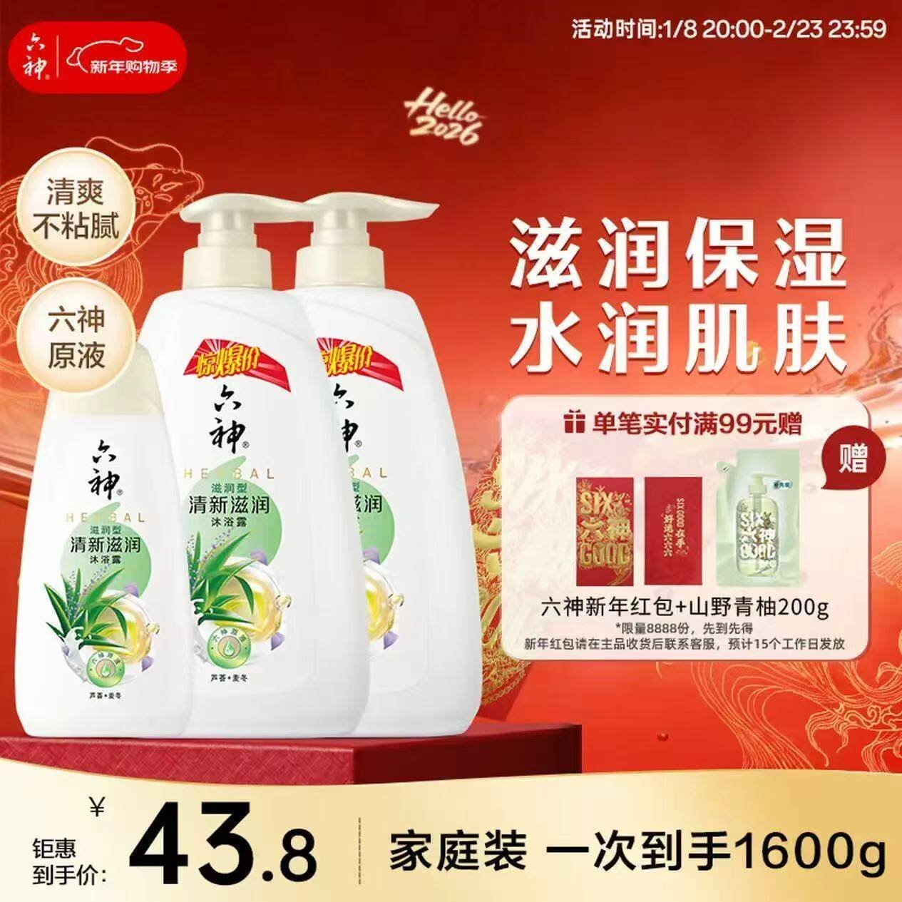 【自营】六神 滋润沐浴露1600g