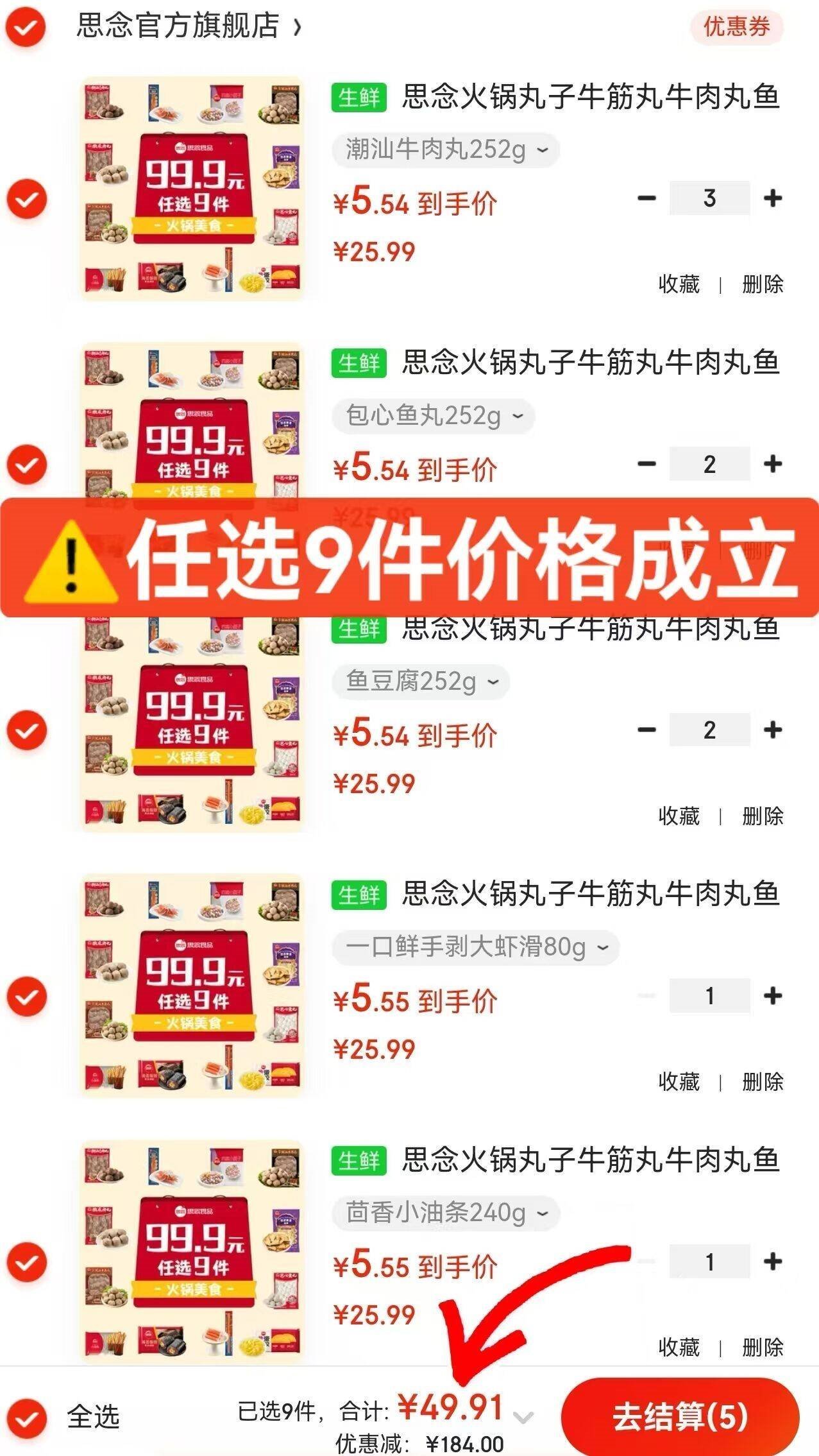 任选9件49.9亓,才5.5亓/件