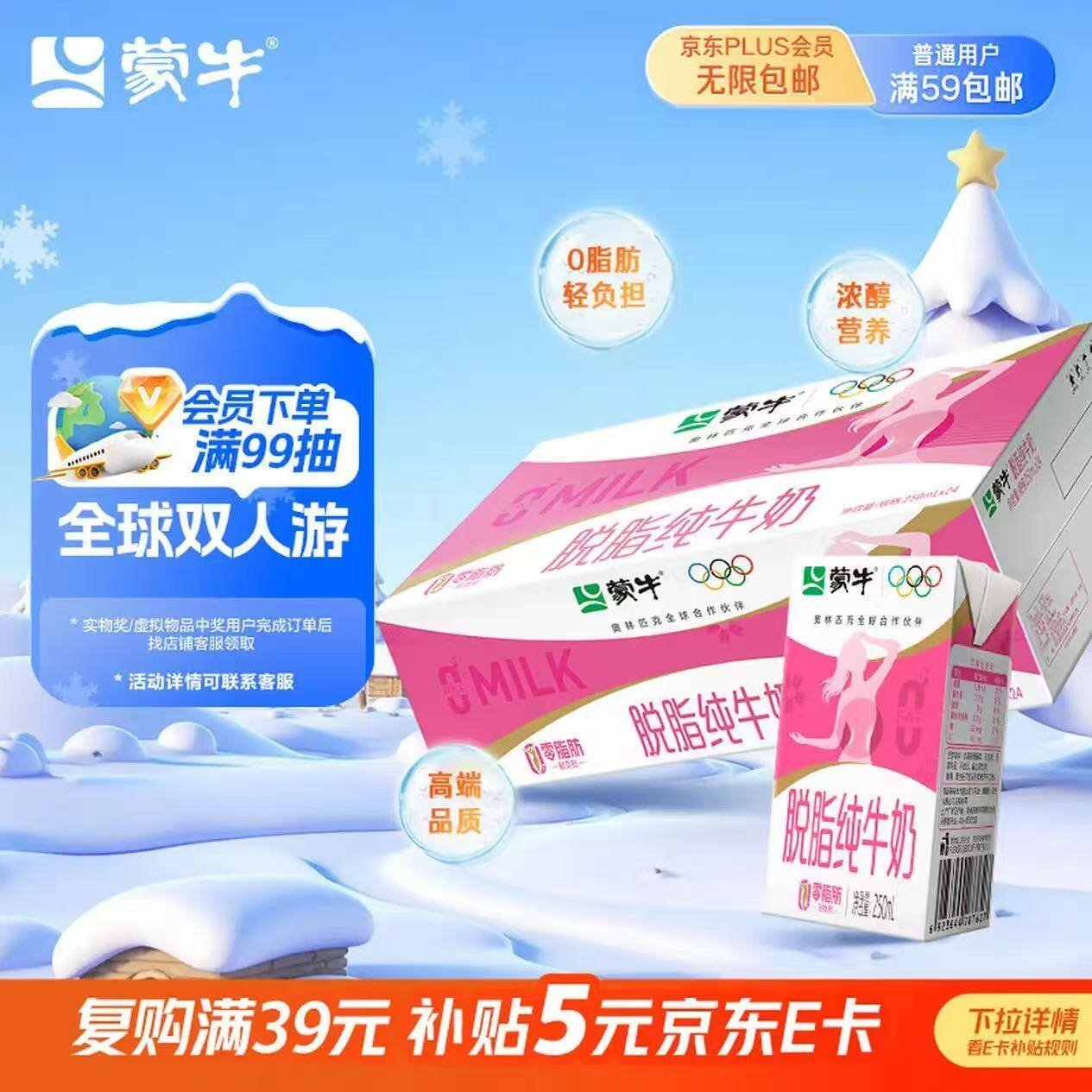 蒙牛 脱脂纯牛奶250ml*24盒