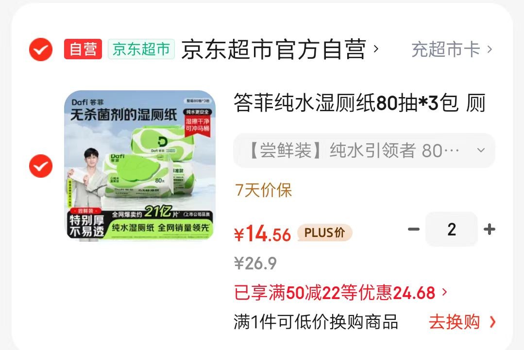 答菲 纯水湿厕纸80抽*3包,拍2件【29.1】