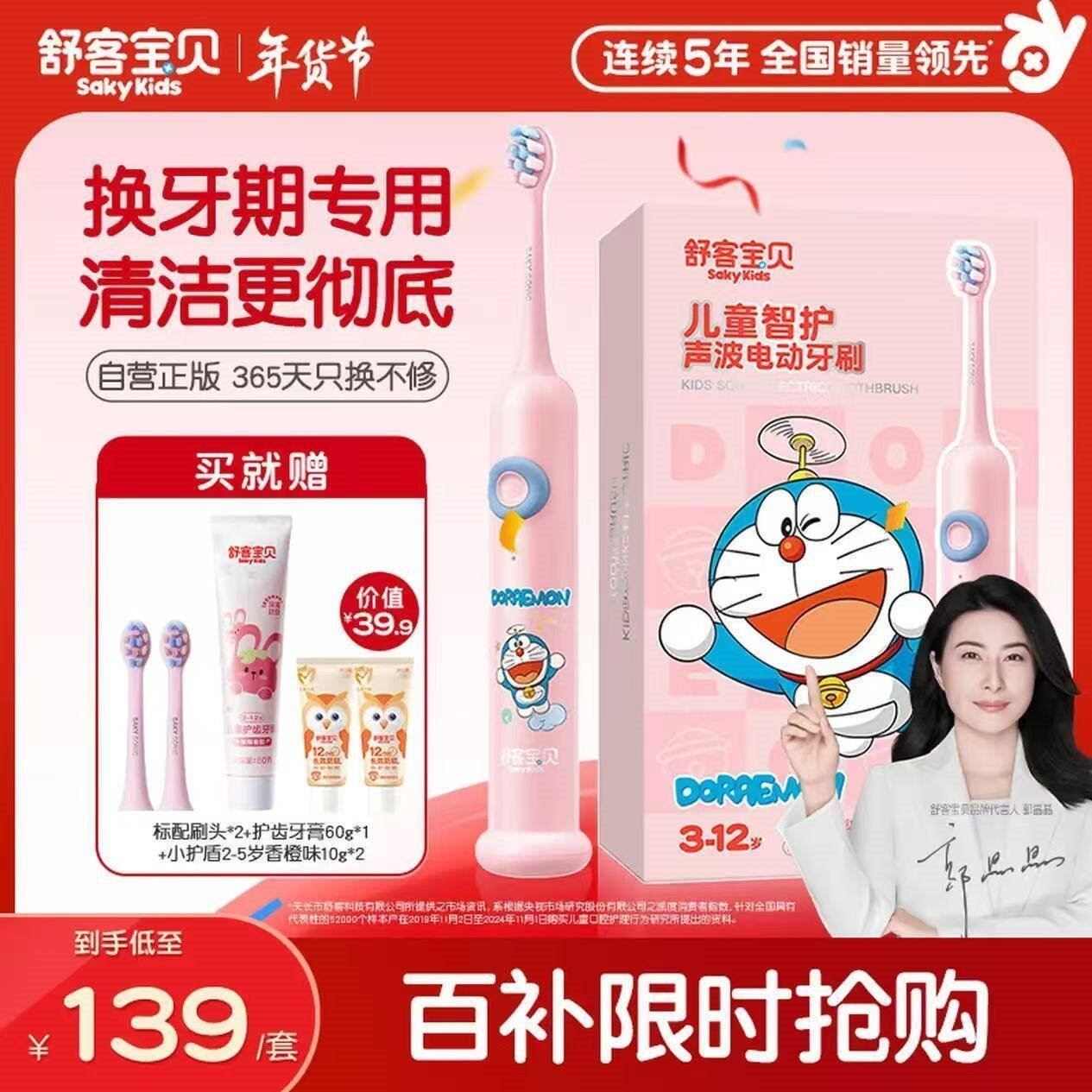 舒客宝贝 哆啦A梦儿童电动牙刷