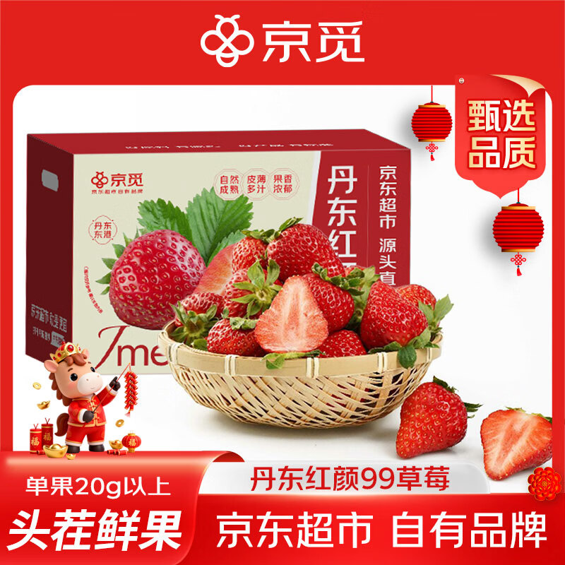 【自营包邮】京觅 丹东红颜99草莓 净重2斤