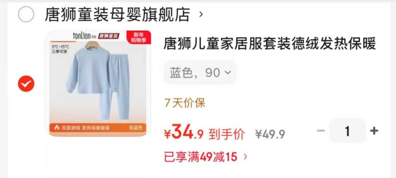 唐狮 儿童家居服套装德绒发热【34.9】