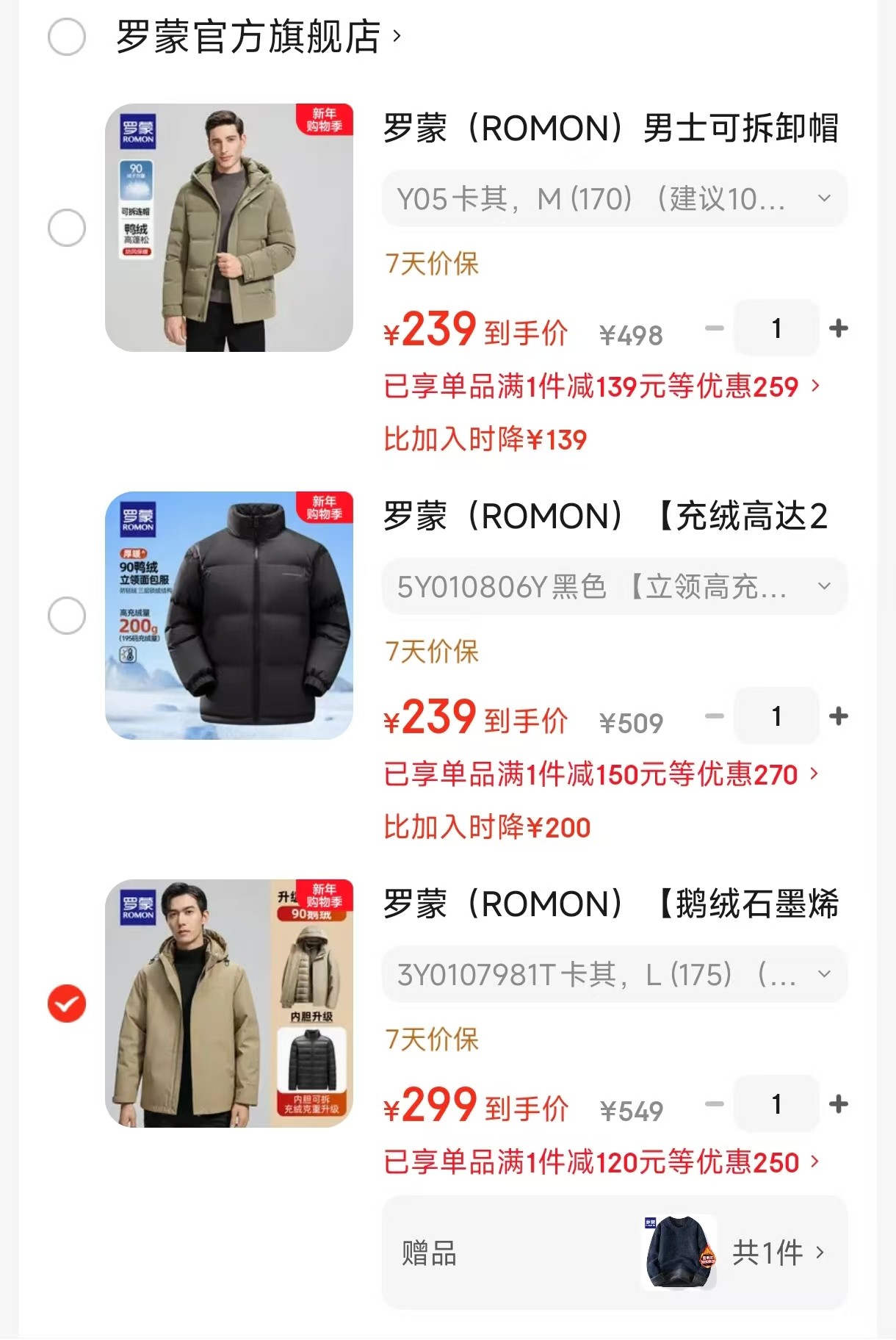 罗蒙 鹅绒石墨烯一衣三穿冲锋羽绒服【299】赠 雪尼尔加绒针织衫https://u.jd.com/EaYJwUj