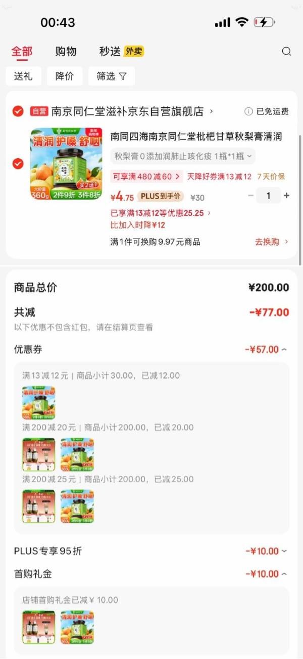 南同四海南京同仁堂枇杷甘草秋梨膏360g