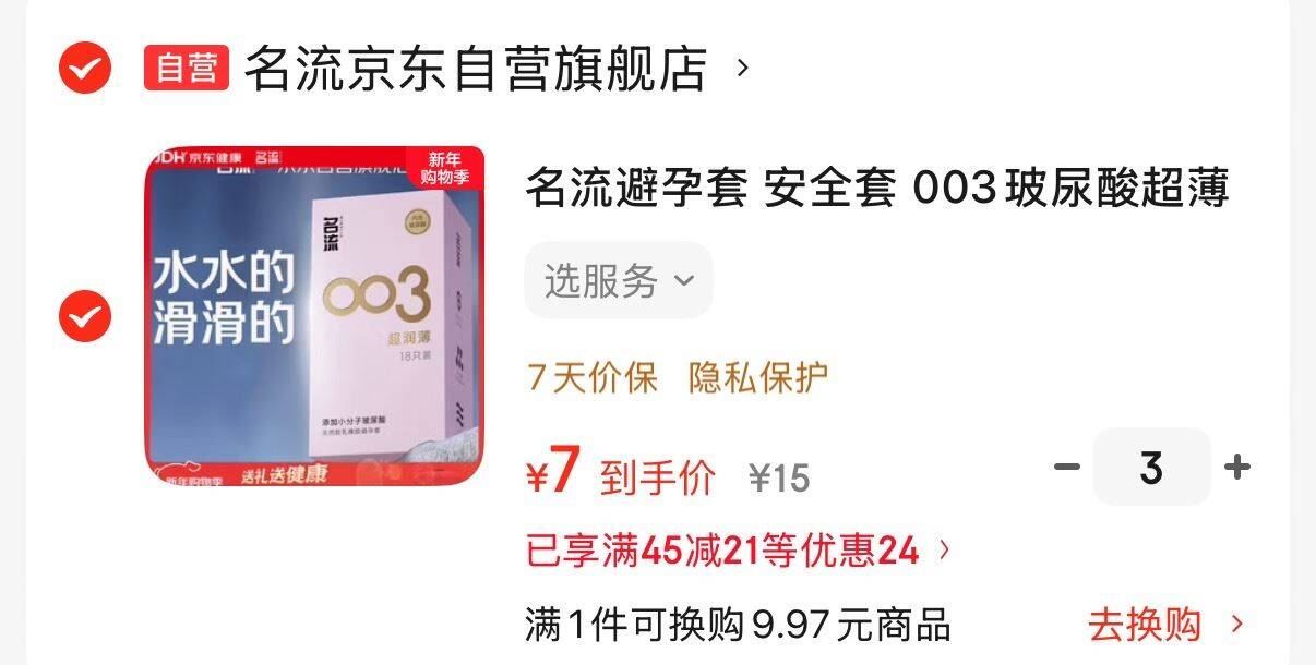 到手24元,叠加3元首购,折合21元3件 7元/件,折一只0.38