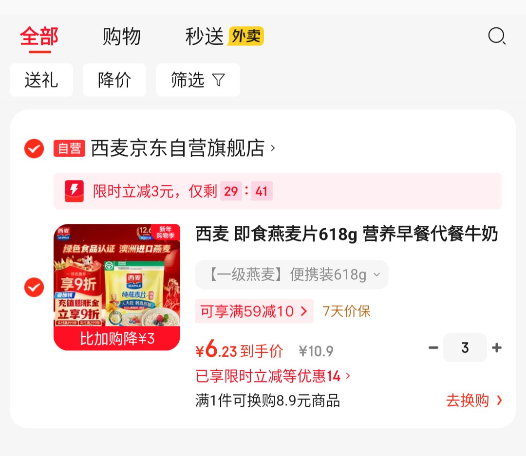西麦 即食燕麦片618g,掉落3立减,拍3件【18.7】