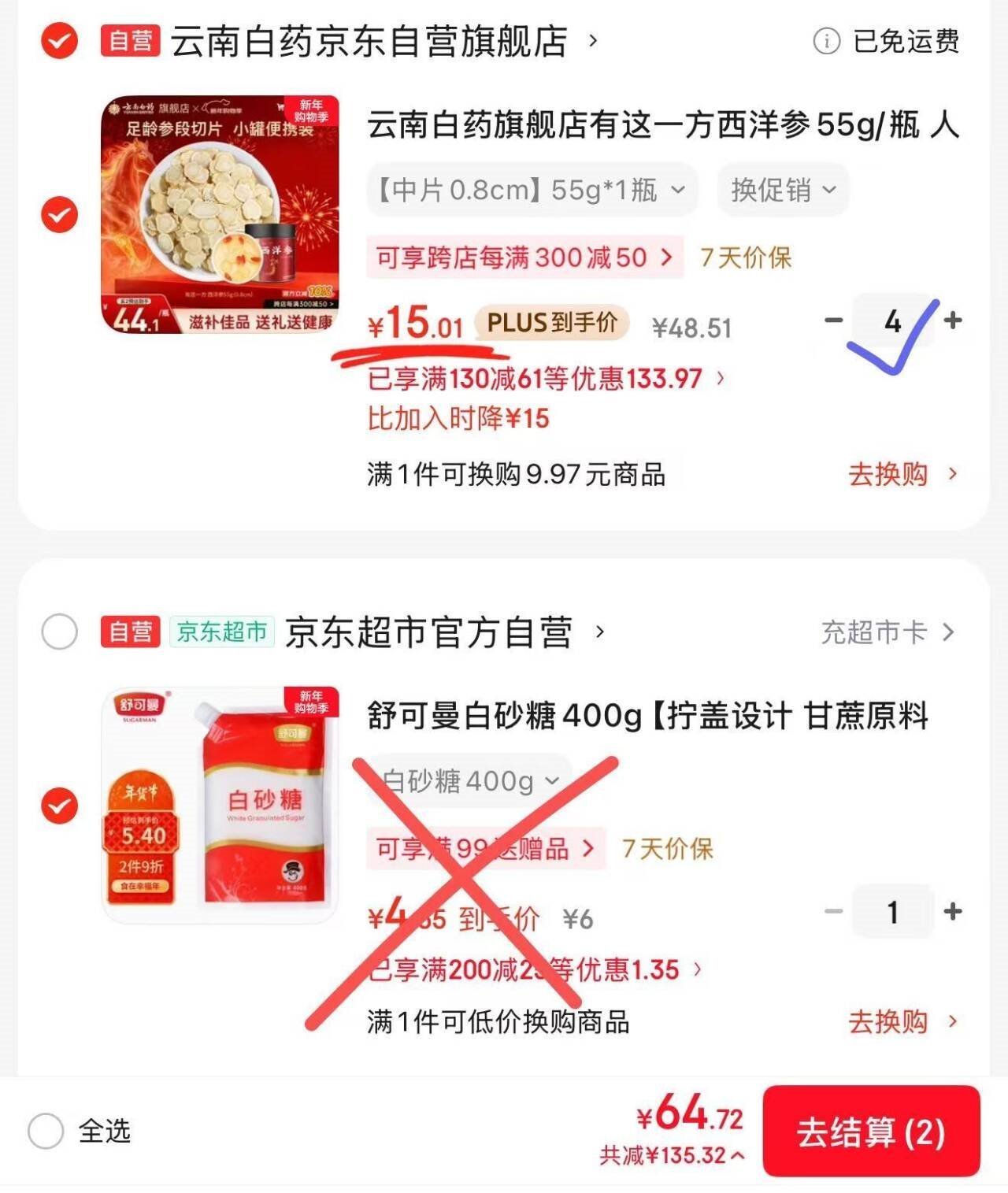 Plus折西洋参到手实付61.9亓