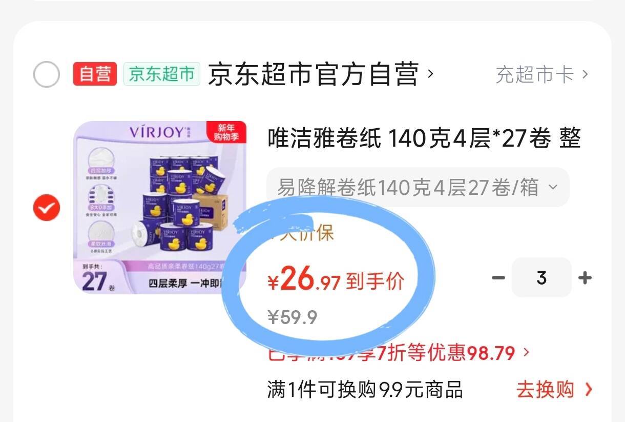 拍3件,折26.9元一箱