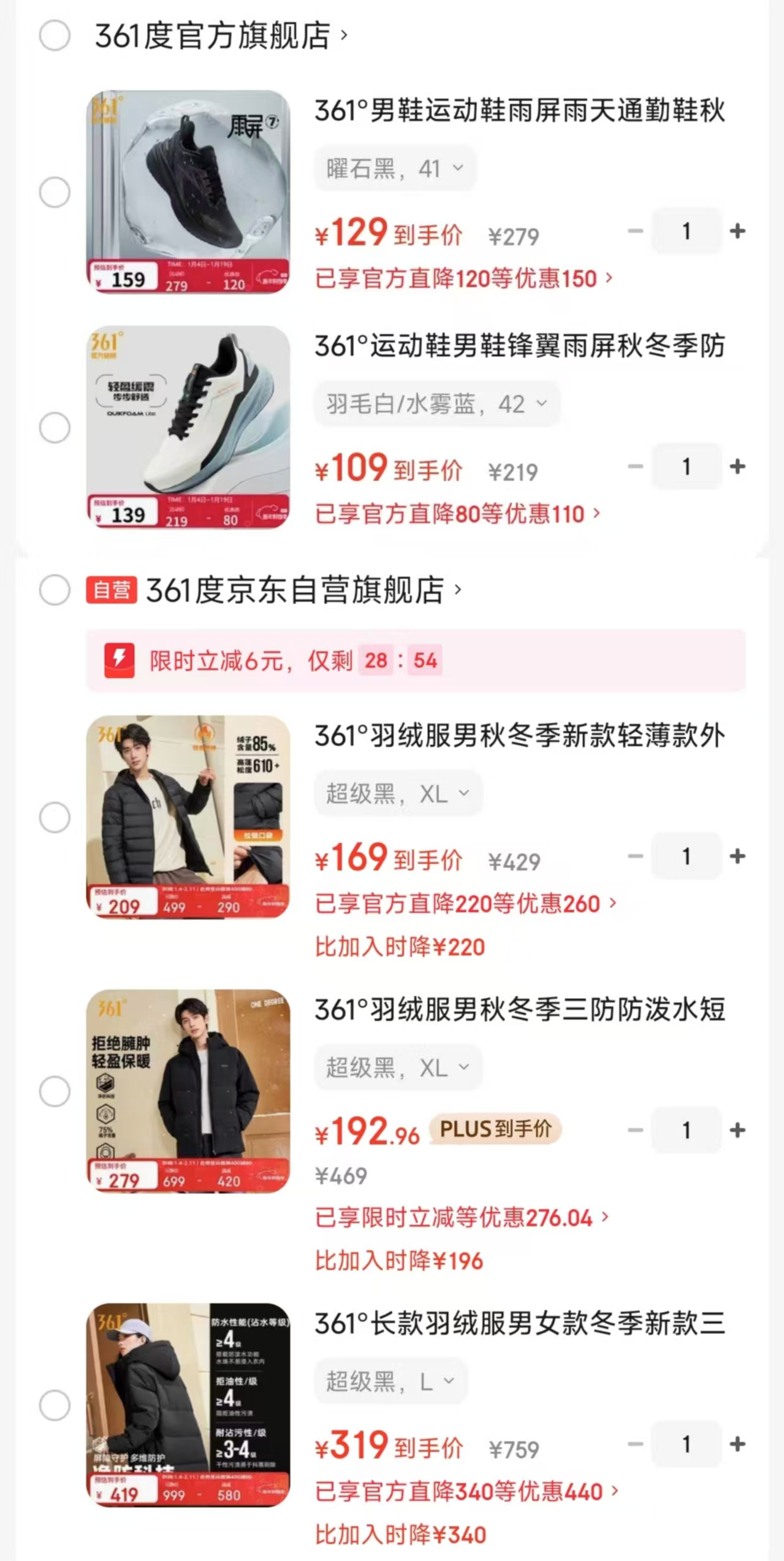 361度跑鞋、羽绒服好价!