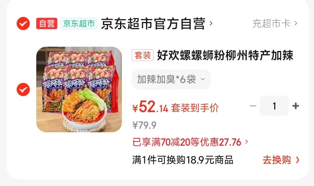 好欢螺 螺蛳粉柳州特产加辣加臭400g*6袋,凑后【52】