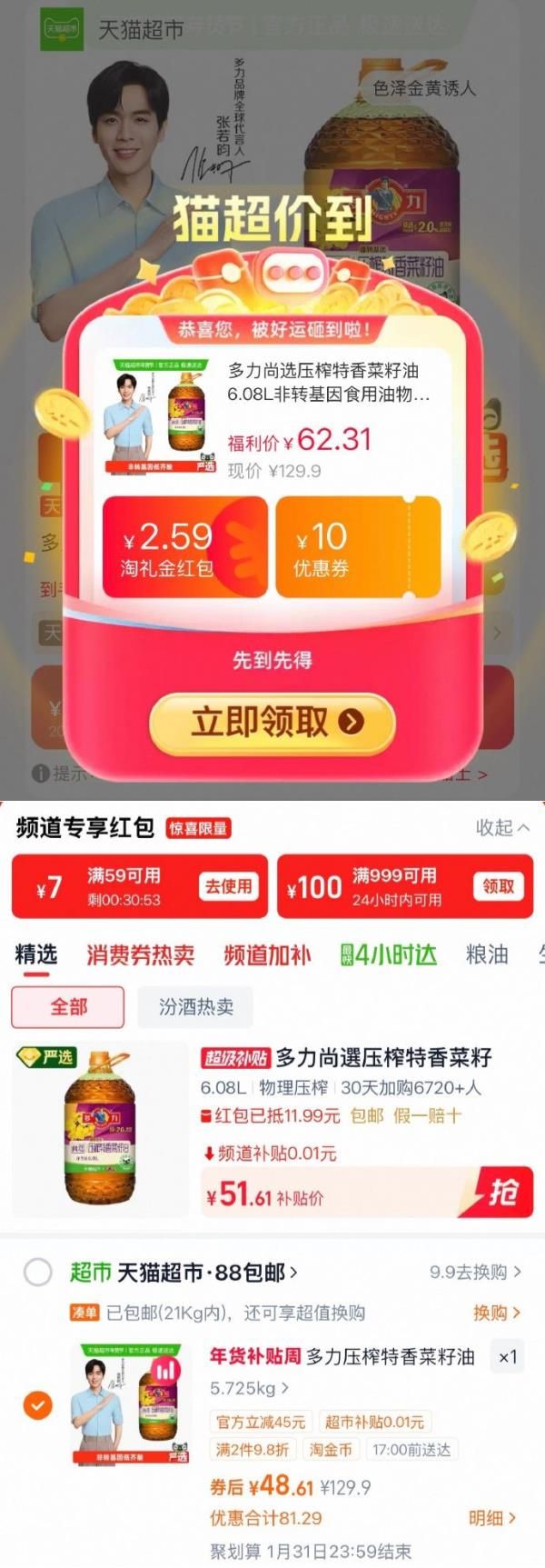 详情页进入超级补贴加购,领59-7红包