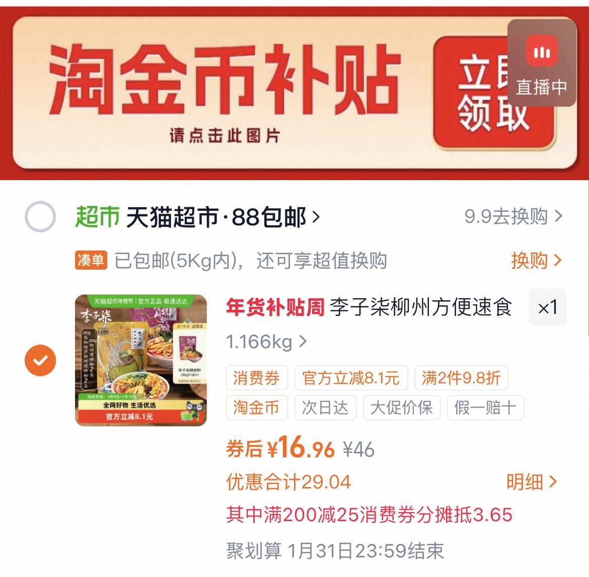 3、凑1件,用消费卷