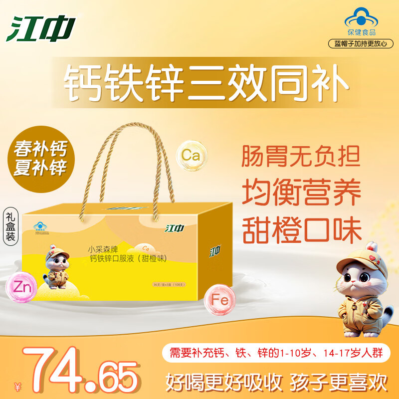 【JD自营】江中 儿童钙铁锌口服液礼盒装 10ml 36支 3盒(共108支)