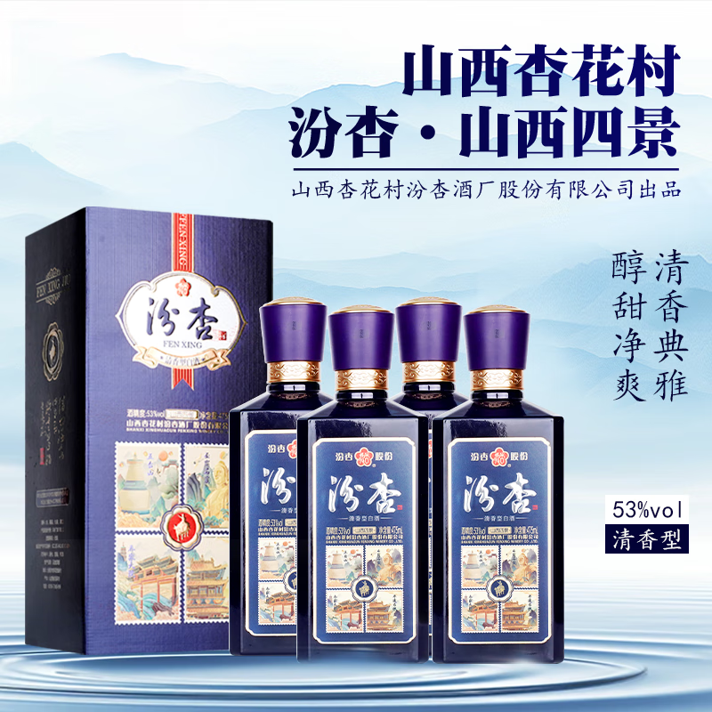 汾杏山西杏花村 53度 475mL 4瓶 山西四景 整箱装