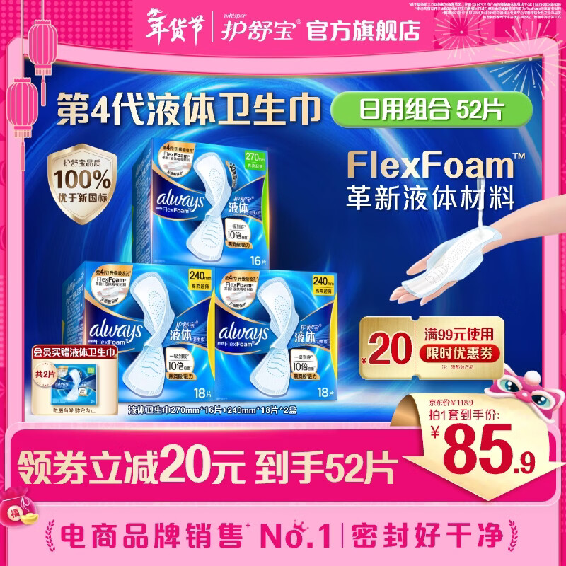 护舒宝 进口新液体卫生巾240mm 36片 270mm 16片