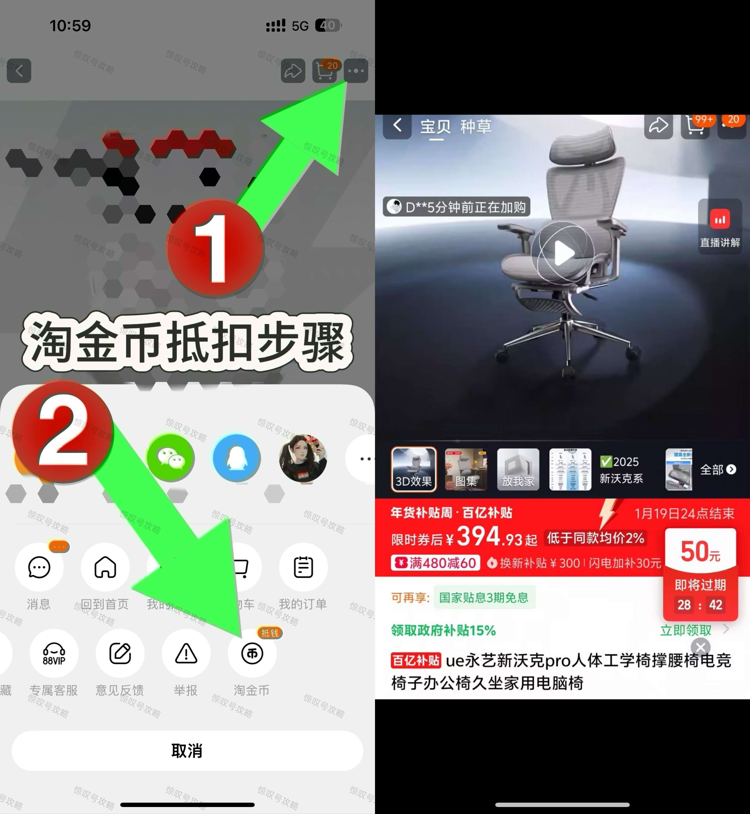 ①熵品页面右上角三个点 (…)淘金幤抵扣24,金幤抵扣加车一件,