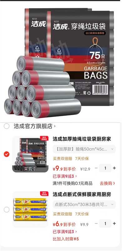 洁成 加厚抽绳垃圾袋加厚款50cm*45cm*150只【9.9】
