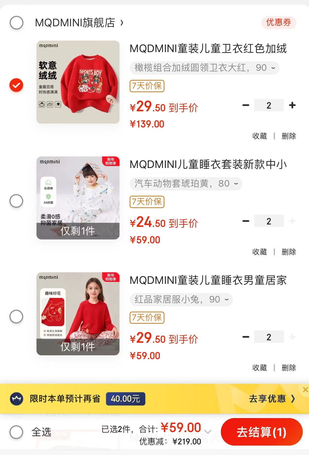 MQDMINI儿童睡衣套装家居服,任选2套【49】https://u.jd.com/Egfiecm