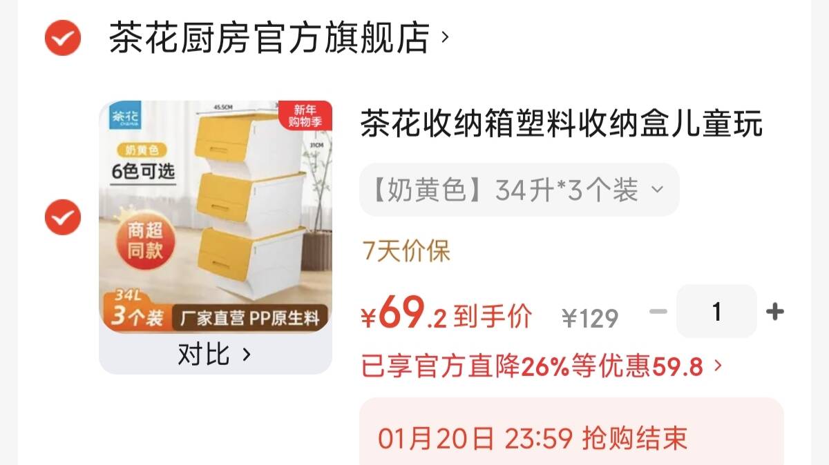 茶花收纳箱34升*3个69元 收纳儿童玩具/杂物/衣物等 当电视机柜/床头柜也好用 好单发报员 2026年01月19日 20:39 0 举报 茶花收纳箱34升*3个69元收纳儿童玩具/杂物/衣物等当电视机柜/床头柜也好用领http://gz.my22.fun/t7tjY3拍https://u.jd.com/EGH35xe 复制文案