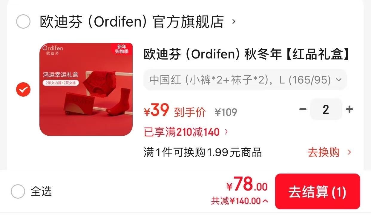 欧迪芬 (Ordifen)本命年 红品礼盒 内裤*2 袜子*2【39】
