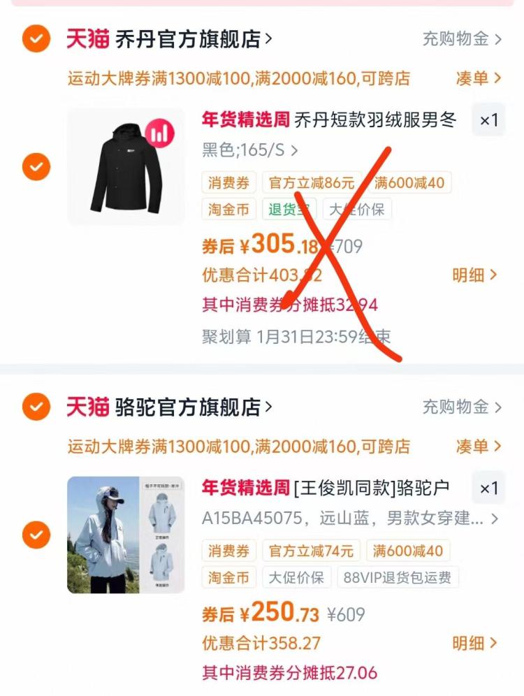 3.最后一步 凑単商品1件 骆驼王者冲锋衣88到手250元 好单发报员 2026年01月20日 10:39 0 举报 3.最后一步 凑単商品1件https://m.tb.cn/h.7NiQnVf骆驼王者冲锋衣88到手250元 复制文案